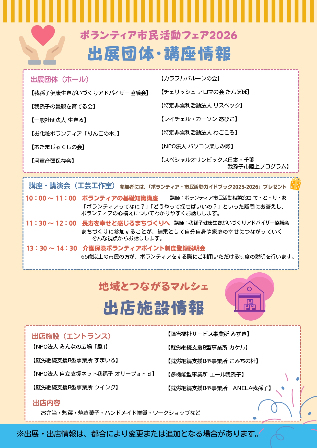 | 主催者 | あびこ市民活動ネットワーク・我孫子市社会福祉協議会 |